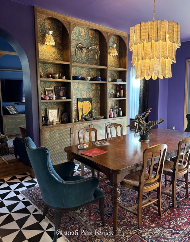 The heart of this BANDD/DESIGN home is a purple-walled dining room with William Morris wallpaper on built-in shelving.… Read More…